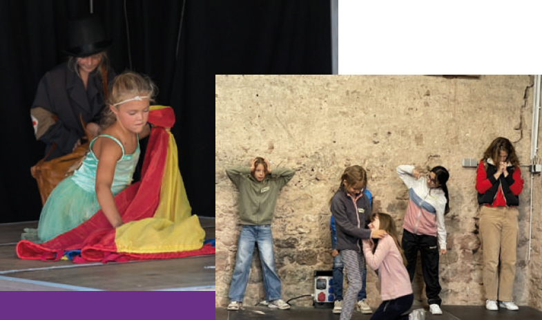 Aauf der Bühne präsentieren Musikimprovisation, Ausdruckstanz, Schauspiel und Choreographie