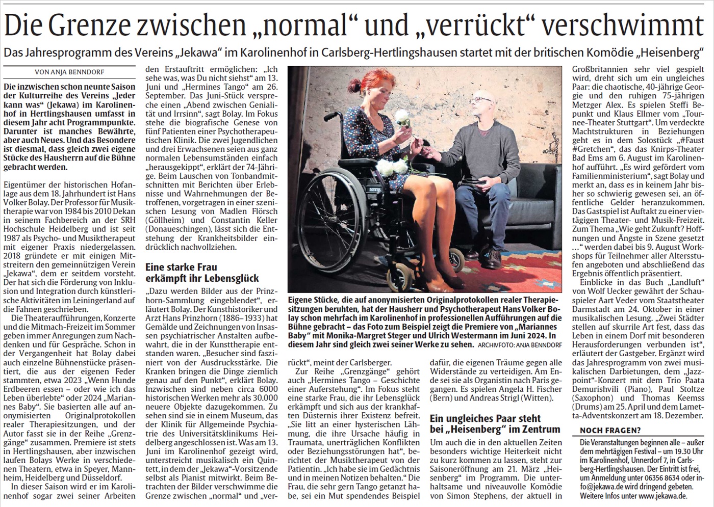 Schauspiel aus der Reihe „Grenzgänge“ von Hans Volker Bolay, Carlsberg.