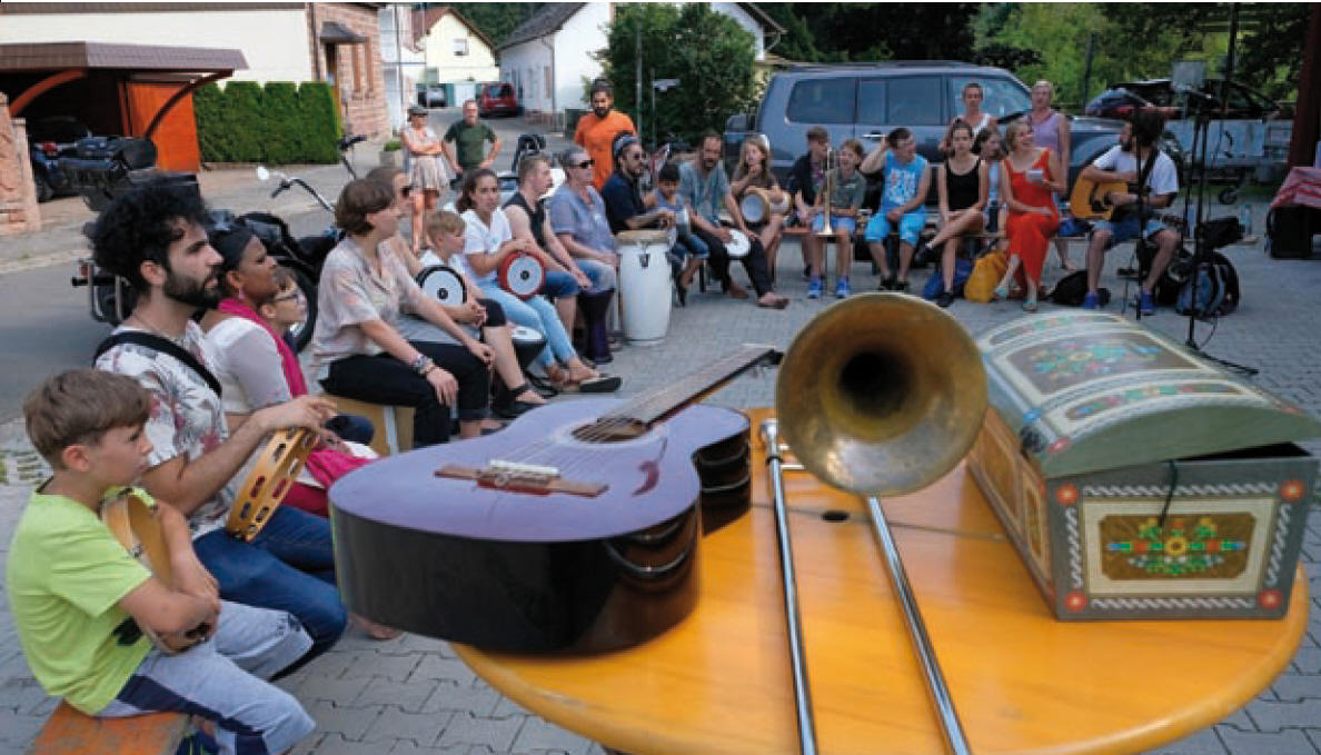 - Samstag und Sonntag ganztägig Workshops (09.30 - 17.00 Uhr) mit ‚Artistc Leaders‘ vom EthnoCamp 2024 für Stimme, Rhythmus, Instrumente und Tanz